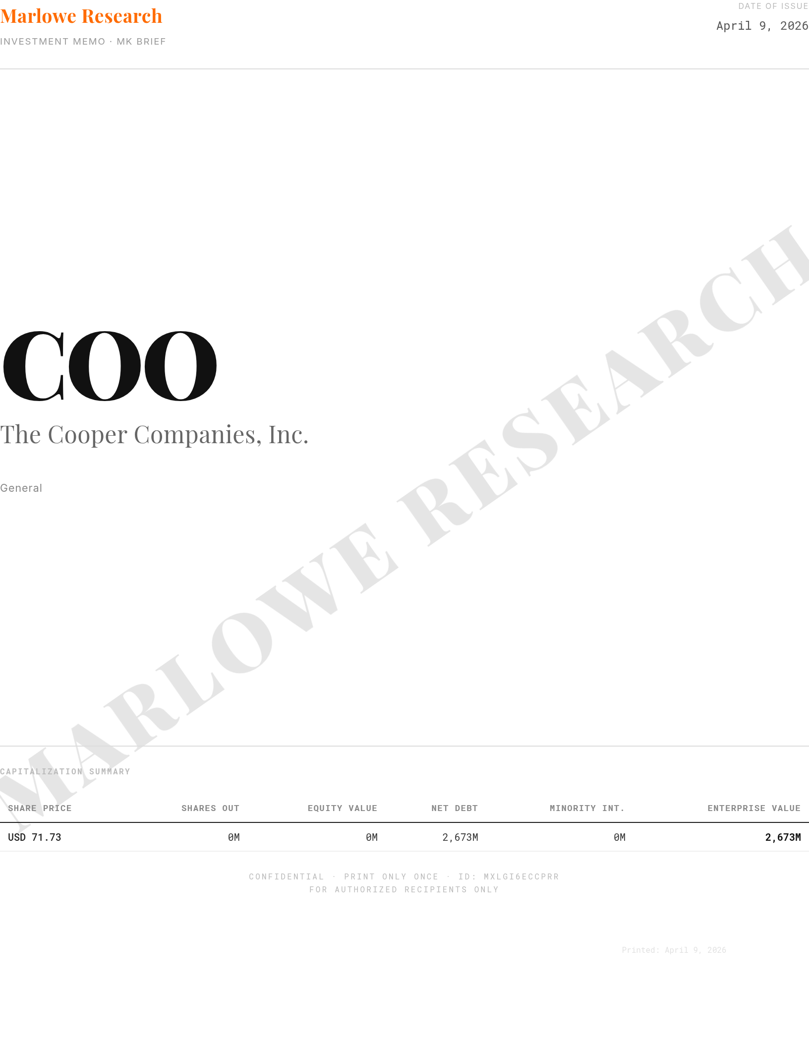 COOThe Cooper Companies, Inc.